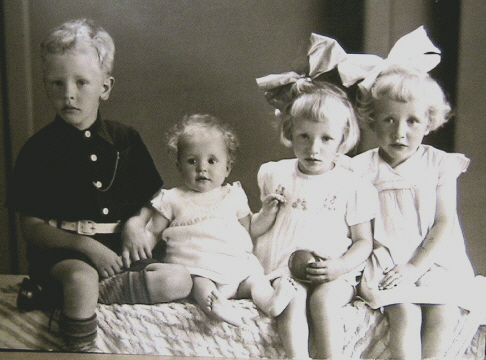 Bij de fotograaf: van links naar rechts, Jan, Anja, Johanna en Andrea Meeske,de oudste 4 kinderen van Jo Meeske en Andrea Meeske van Eerden.