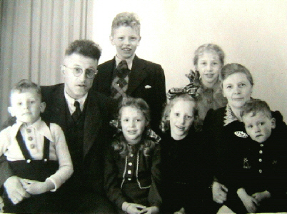 Vooraan van L.naar R. Wolter op schoot bij z’n vader, Anja ,Johanna, Albert op schoot bij z’n moeder en daarachter dochter Andrea, met links van haar broer Jan.