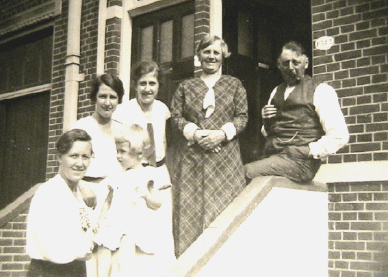Rechtsboven Johannes Rietema, broer van Johanna Meeske-Rietema met naast hem zijn vrouw Renske. Links van haar Eva meeske, daarnaast Ammie(Harmke) Meeske.