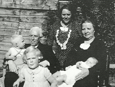 Everardus en Foekje Meeske met hun dochter Geertje den Dulk-Meeske geb.1906 en haar 3 oudste kinderen nl.Everarda(Arda)Maarten en Gerard Het gezin woonde eerst in Leeuwarden, later in Den Haag.